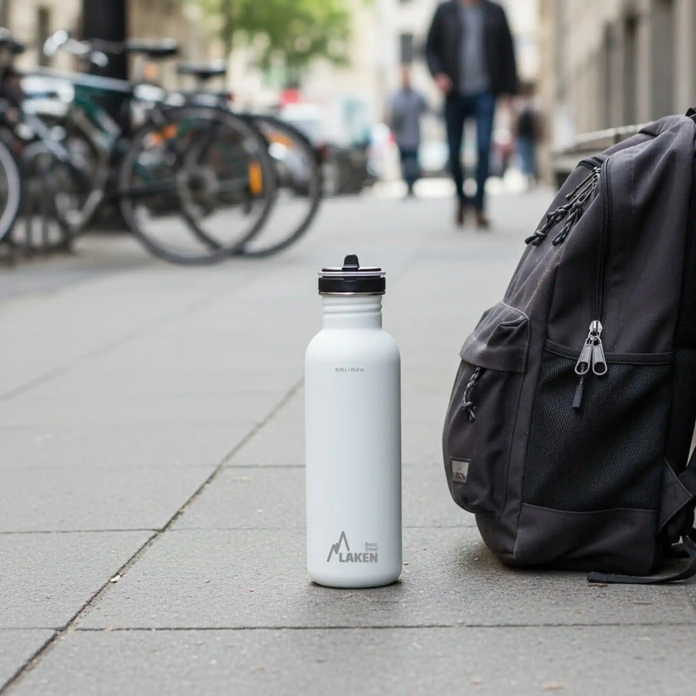 El tapón FLOW permite beber en cualquier posición: solo gira la boquilla y listo. La gama BASIC STEEL destaca por su resistencia y diseño actual.
