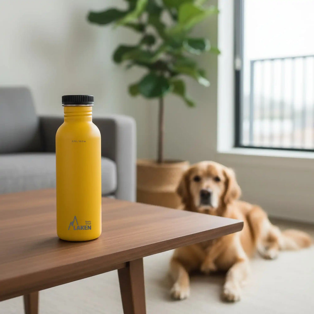 Botella de acero inoxidable 18/8 de una pared, ligera y segura para uso alimentario. Lleva un tapón de rosca de polipropileno, cómodo y a prueba de fugas.